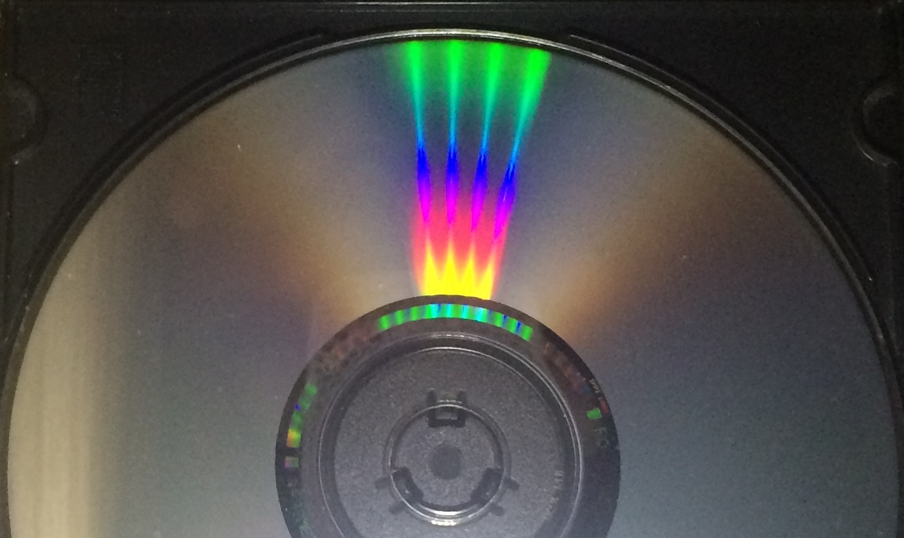 Beleuchte eine CD-ROM mit einer LED-Taschenlampe so, dass die unterschiedlichsten Farben entstehen.
